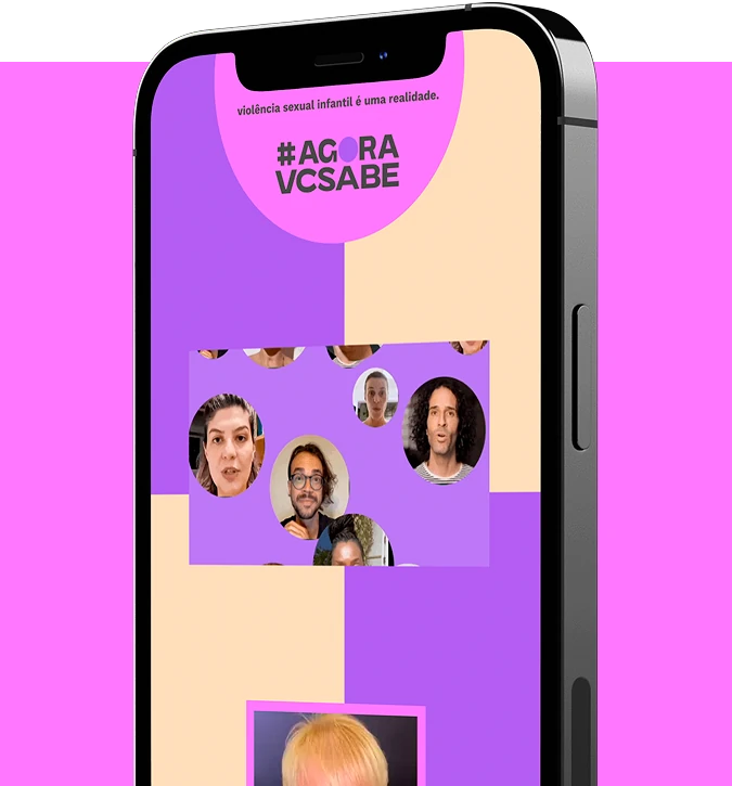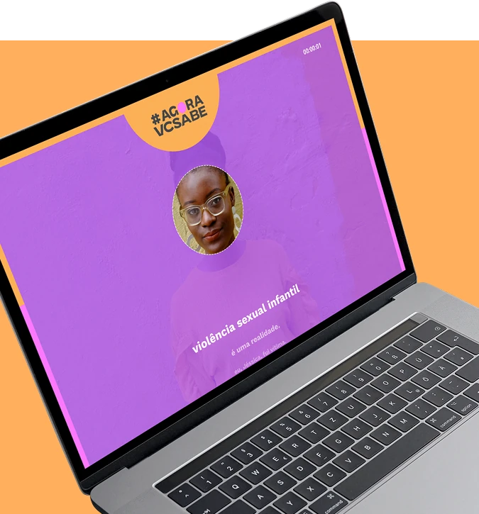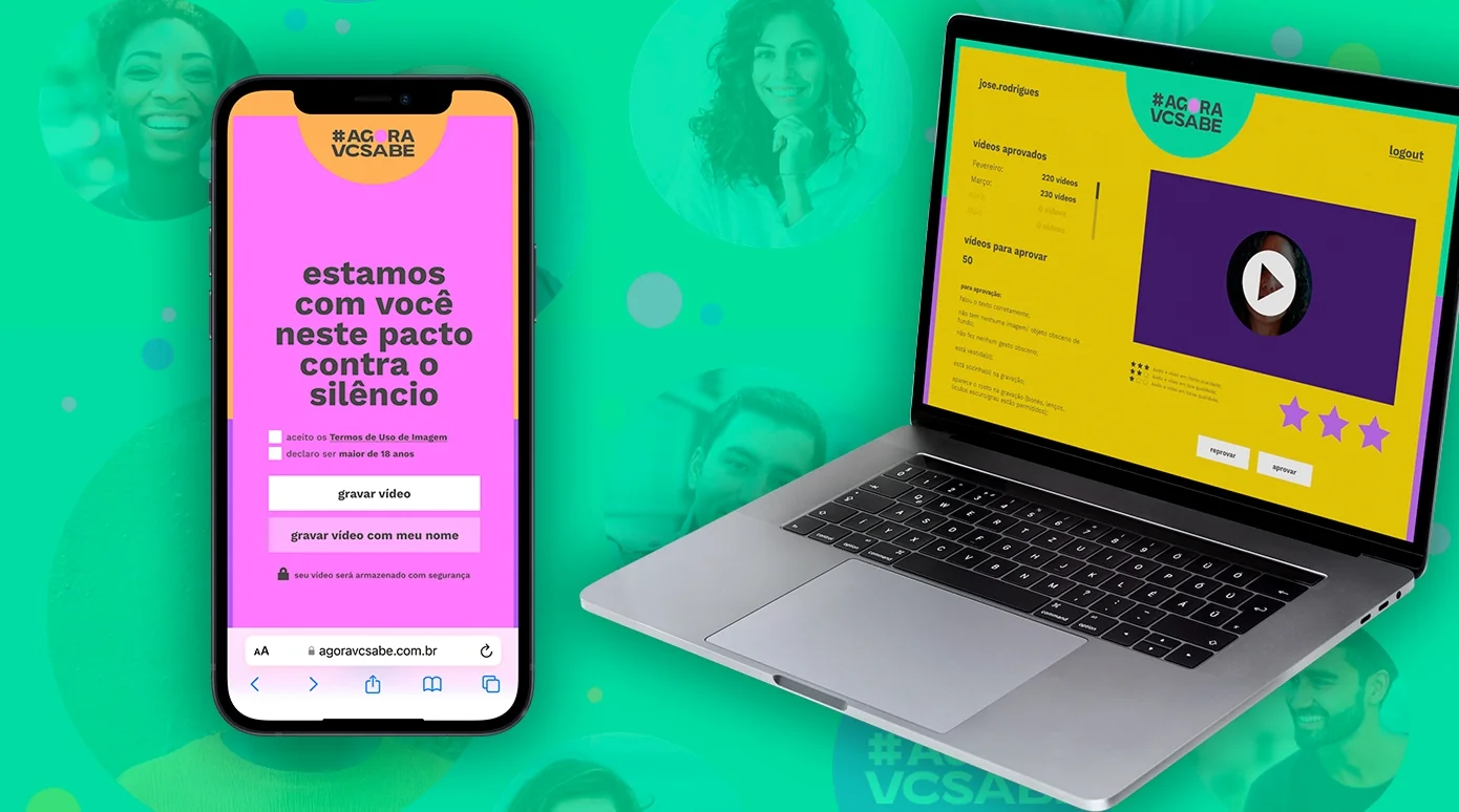 Desenvolvemos uma plataforma interativa que consistia em três aplicações-chave. A primeira aplicação permitia aos usuários um rápido cadastro e, de forma simbólica, gravar o mesmo grito de protesto da passeata virtual (#agoravcsabe). A segunda aplicação era dedicada à avaliação interna e administrativa dos vídeos, garantindo que o conteúdo fosse tratado com sensibilidade e respeito. Por fim, a terceira aplicação exibia os vídeos aprovados na tela principal da campanha, criando um impacto visual e emocional significativo.