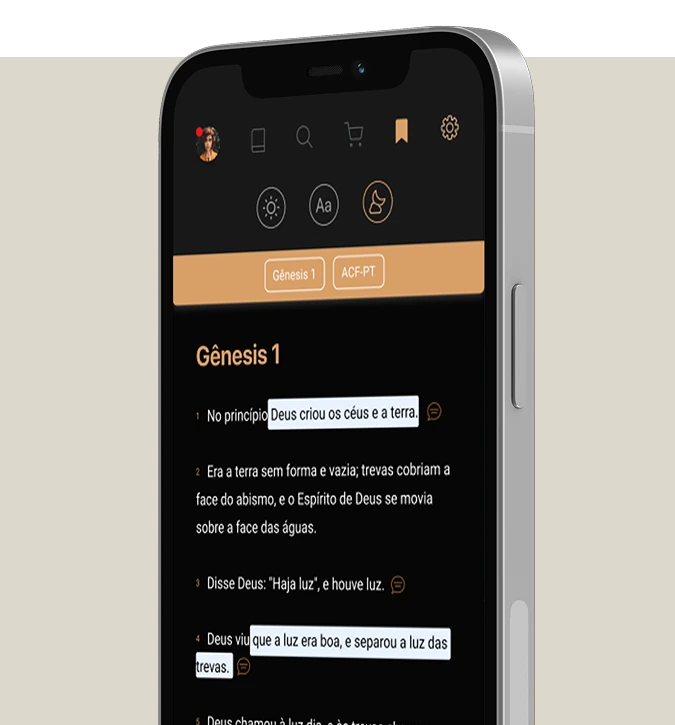 Desenvolvemos um aplicativo que vai além da mera leitura, integrando ferramentas intuitivas para tornar a experiência do usuário única e significativa. Os usuários podem marcar suas frases e versículos favoritos para referência futura, criar tags personalizadas para organizar suas marcações e adicionar comentários pessoais a cada versículo.