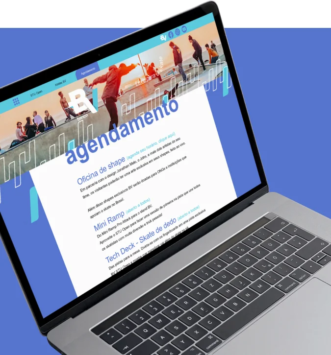 Foi desenvolvido o site do BV STU Open, uma parceria inovadora entre o Banco BV e o renomado campeonato de skate STU Open. O site foi concebido como uma plataforma abrangente que não apenas fornecia informações cruciais sobre o campeonato, mas também celebrava a cultura do skate e a participação de talentosos atletas.