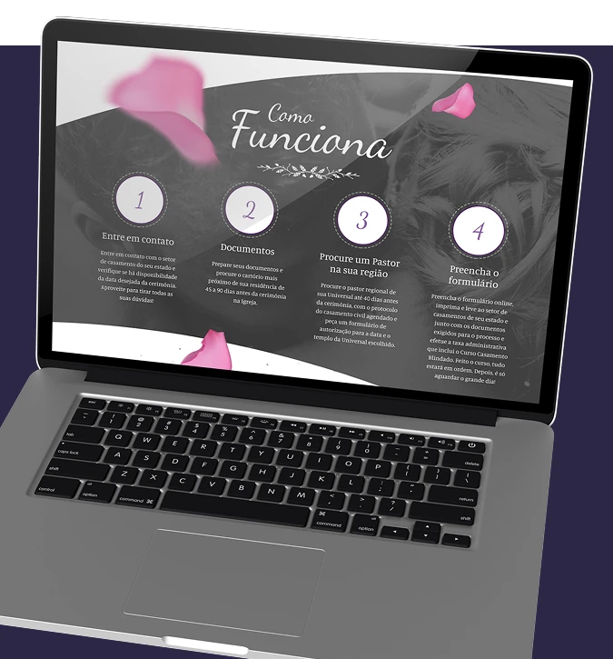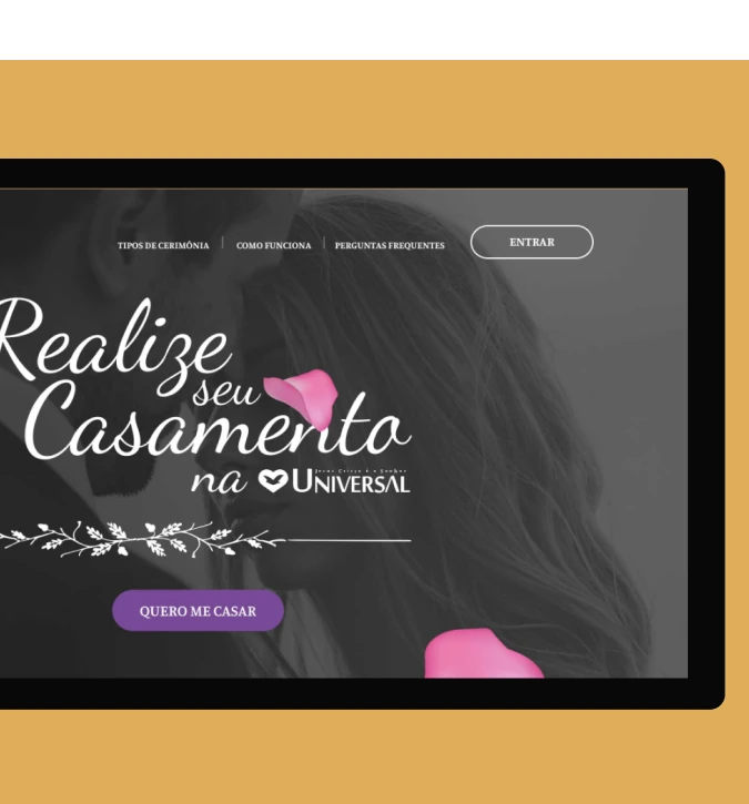 Casamentos, visa oferecer aos membros a oportunidade única de celebrar o matrimônio na Igreja Universal. A landing page foi desenvolvida para simplificar e agilizar o processo, permitindo que os interessados avancem com os trâmites, onde incluem um curso chamado Casamento Blindado.