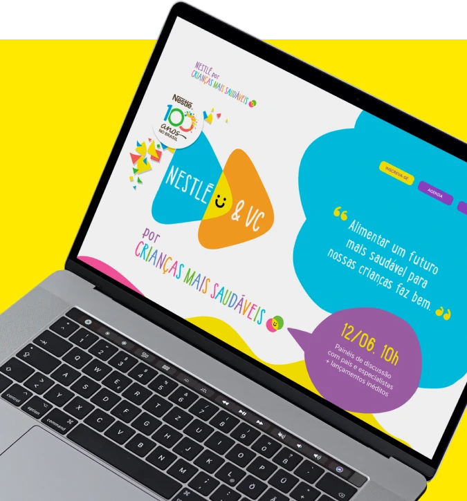 O desafio era criar uma landing page que não apenas refletisse a essência da campanha “Nestlé & vc”, mas também engajasse os participantes de maneira eficaz. Era fundamental transmitir a mensagem de cuidado com a alimentação infantil de maneira clara e envolvente. Além disso, a landing page precisava ser visualmente atraente, representando a identidade vibrante da Nestlé e incentivando os pais a participarem ativamente dos painéis de discussão.