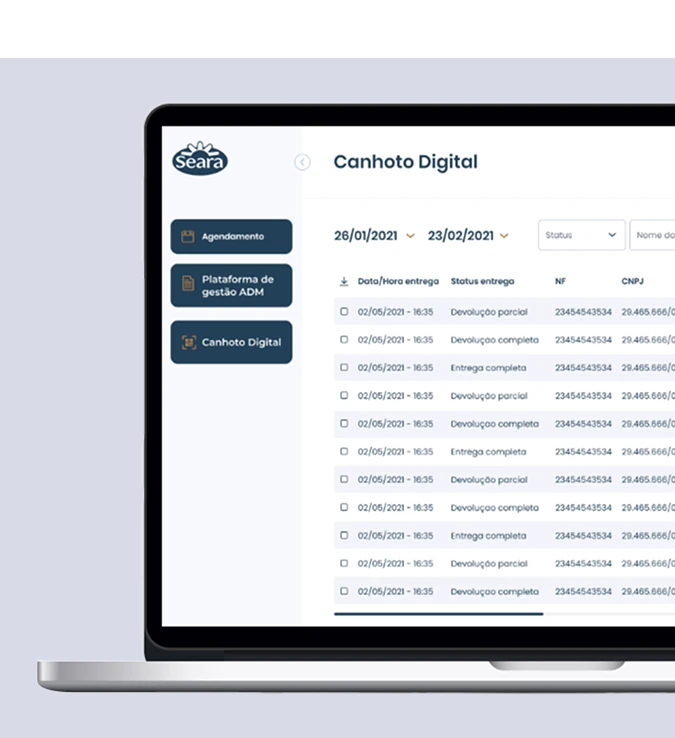 Com o App Canhoto Digital, eliminamos todos o processo offline de canhotos (notas fiscais) da Seara, a fim um controle muito mais eficiente ao digitalizar e registrar a comprovação de entrega de mercadorias em nuvem de forma ágil e segura.