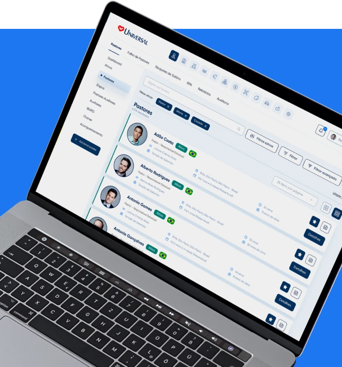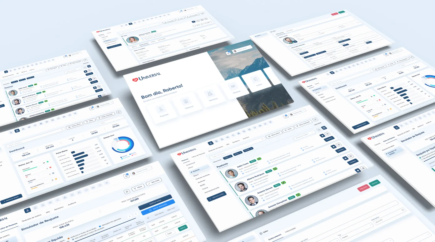 Desenvolvemos o SGU, uma plataforma robusta que unifica todos os cadastros e dados dos membros da Igreja Universal. O sistema permite visualizar, editar e excluir informações pessoais e financeiras de maneira segura e autorizada. A criação de perfis diferenciados para membros, obreiros e pastores garante a adequada administração dos níveis de acesso.