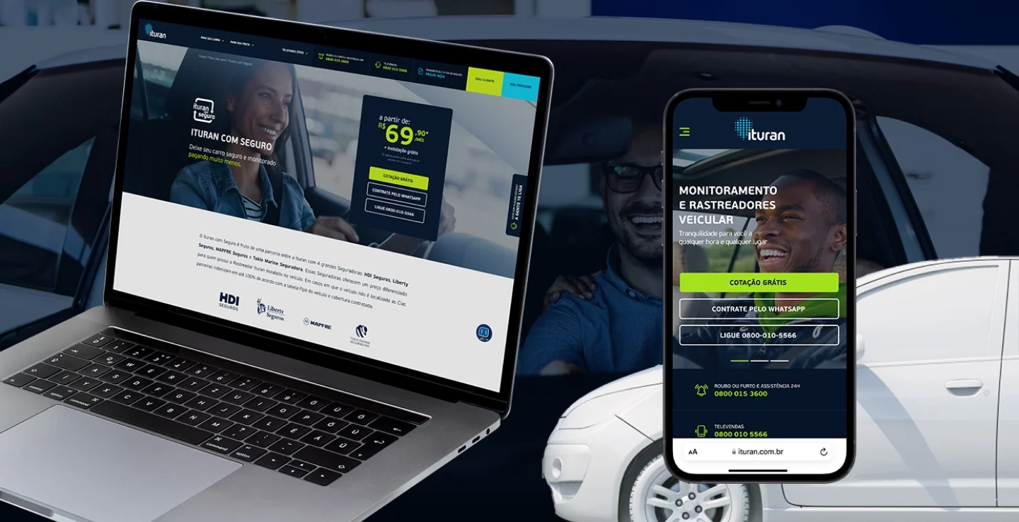A Ituran, reconhecida por seus serviços de seguros há mais de 20 anos, com rastreamento veicular e gestão de frotas, buscou criar um ambiente digital que facilitasse a cotação de seguros, o rastreamento eficiente, a gestão abrangente de frotas para carros e motos, além de oferecer uma plataforma de pagamentos e uma assistência multiplataforma.