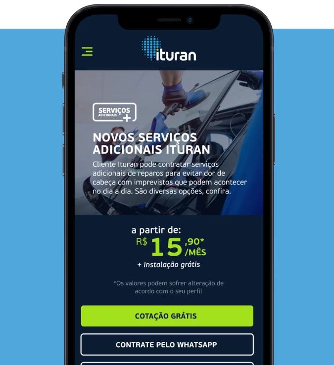Desenvolvemos um design que integrava todas as soluções da Ituran de maneira intuitiva, permitindo aos usuários acessar facilmente serviços como cotação de seguros, rastreamento veicular e gestão de frotas a partir de uma única plataforma.