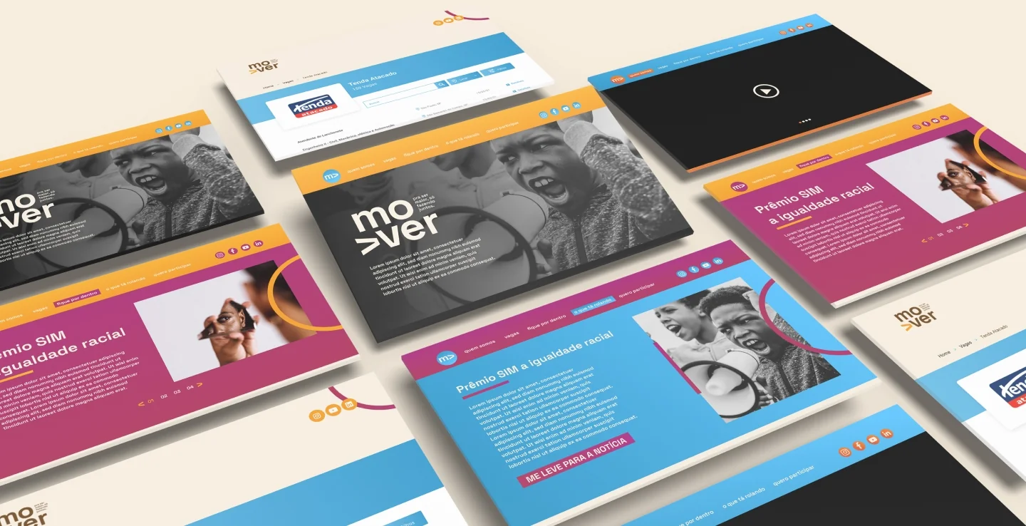 A MadeinWeb recebeu todos os componentes visuais, escalas de cores, fontes e a estrutura visual das páginas diretamente da Somos Mover. Esses elementos foram meticulosamente incorporados ao design do site, garantindo uma representação autêntica da identidade visual da associação.